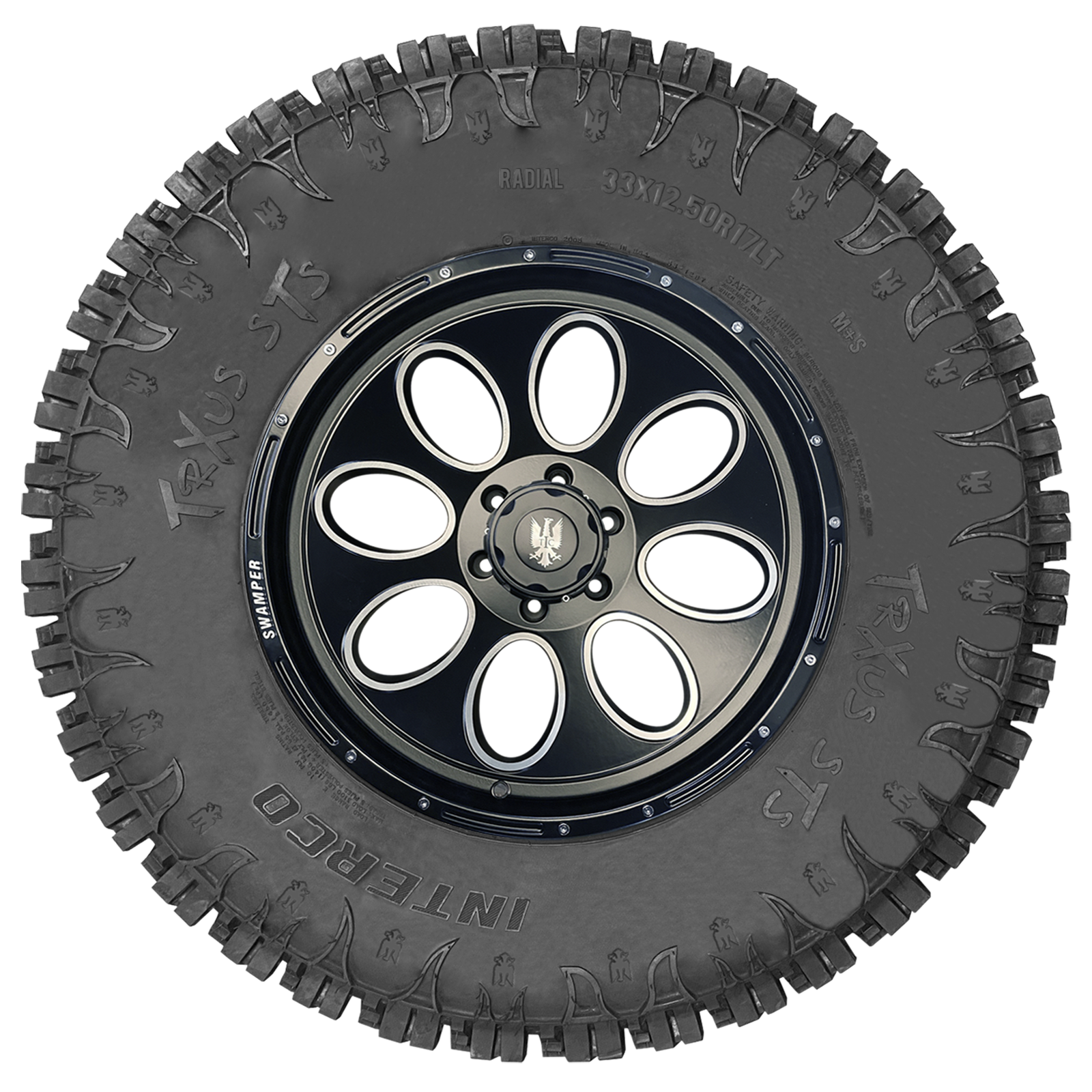 Please Note: Super Swamper, Three Stage Lug® (TSL) Technology, Bogger, IROK, TrXus, Ground Hawg, Cobalt, SSR, LTB, Sticky, VorTrac, Thornbird, SX, SXII, Trailer Trac, SS-M16, IROK ND, Vampire, Vampire II, ASX, EDL, Swamp Lite, Radial Reptile, LI-EF, Black Mamba, InterForce, AquaTorque,V45, Sniper, Hawkeye, Swamper, Hurricane, Cat-5, side-lugs, and Tread Threadz are patented, trademarked and /or copyrighted terms, logos or designs of Interco Tire Corporation, including tread patterns, and may not be used for any reason without the express written consent of Interco tire Corporation.