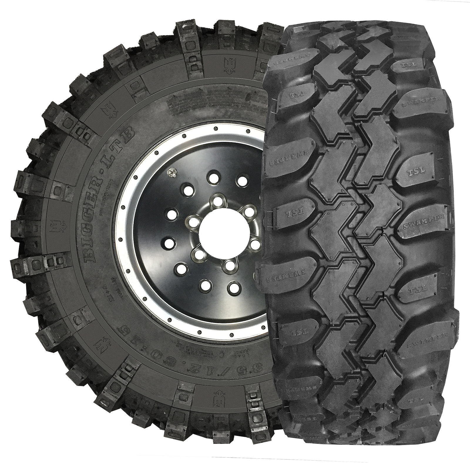 Please Note: Super Swamper, Three Stage Lug® (TSL) Technology, Bogger, IROK, TrXus, Ground Hawg, Cobalt, SSR, LTB, Sticky, VorTrac, Thornbird, SX, SXII, Trailer Trac, SS-M16, IROK ND, Vampire, Vampire II, ASX, EDL, Swamp Lite, Radial Reptile, LI-EF, Black Mamba, InterForce, AquaTorque,V45, Sniper, Hawkeye, Swamper, Hurricane, Cat-5, side-lugs, and Tread Threadz are patented, trademarked and /or copyrighted terms, logos or designs of Interco Tire Corporation, including tread patterns, and may not be used for any reason without the express written consent of Interco tire Corporation.
