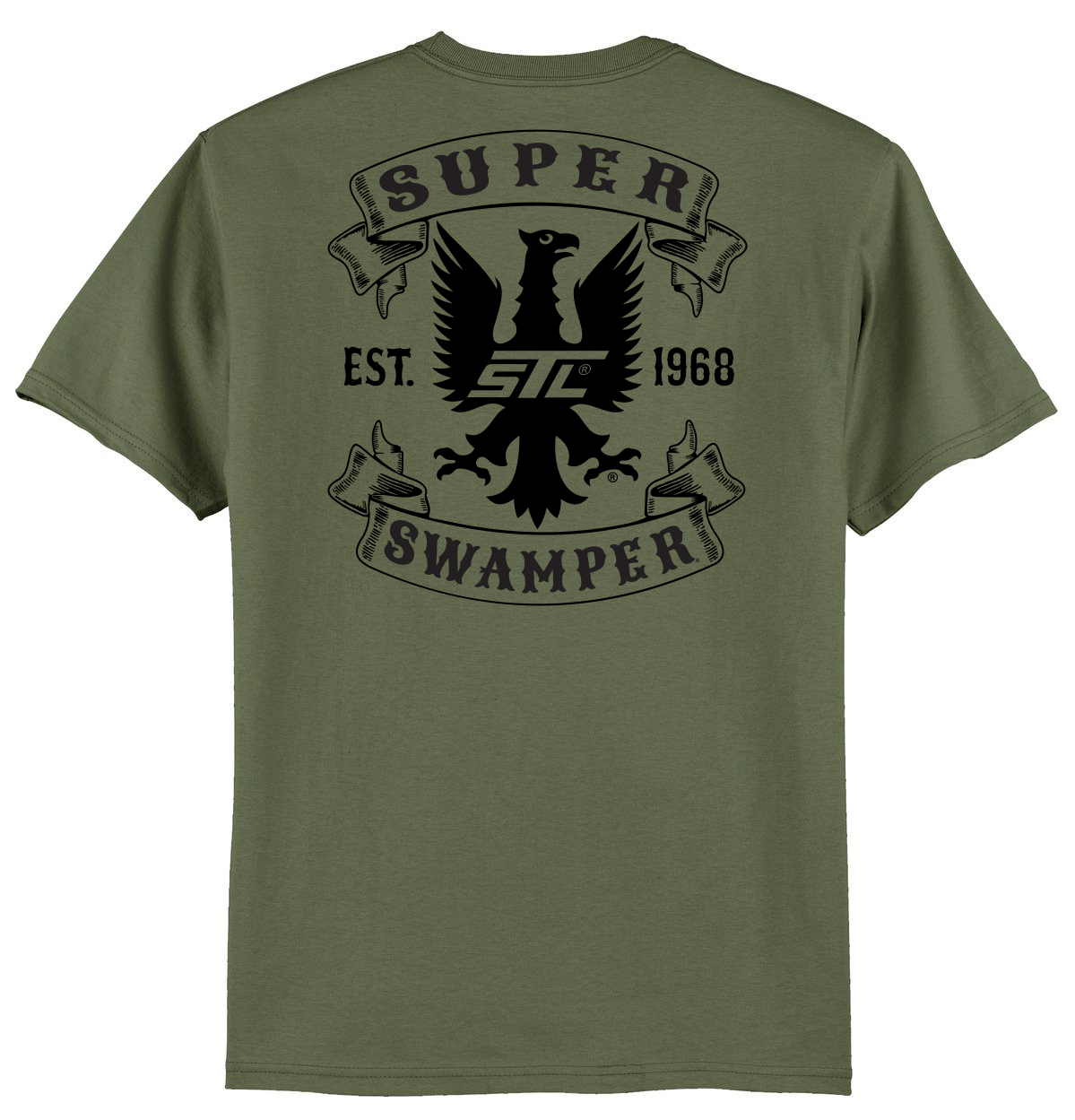 TREAD THREADS™ SUPER SWAMPER® MILITARY GREEN BANNER LOGO T- SHIRT